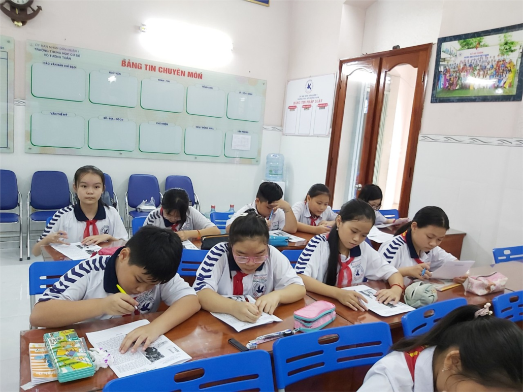 Các em học sinh làm bài thi trong thời gian 90 phút và hoàn thành trong không khí nghiêm túc.